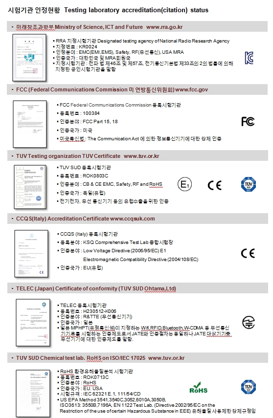 | 1993.06.15 | EMI certification Testlab registration(Ministry of Science, ICT and Future) |